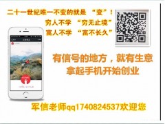 在这个互联网+的时代,一批又一批的坚定自己梦想的人借助互联网成就了自己,比尔盖茨为什么在短短几年成为世界首富?张朝阳,丁磊这样三十出头的数字英雄,为什么成为今天中国最有钱的?因为他们选择了当今最赚钱的行业------互联网,互联网是人类历史上最彻底的财富革命!移动互联网将会用更短的时间创造更多的的财富!