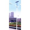 系统由太阳能电池组件部分(包括支架)、LED灯头、控制箱 (内有控制器、蓄电池)和灯杆几部分构成;太阳能电池板光效达到127Wp/m2,效率较高,对系统的抗风设计非常有利;灯头部分以1W-5W白光LED和1W-5W黄光LED集成于印刷电路板上排列为一定间距的点阵作为平面发光源。