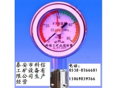 在使用前,先将测压表红针归零。液压支架卸载降架后,从液压支架柱体的卸载阀(安全阀)引出高压胶管连接测压表,液压支架前柱、后柱分别安装一台测压表。黑针显示当前压力值,红针显示监测过程中的最大压力值。每次监测记录压力数据后,需将红针归零。注意事项:压力表出现故障之后请勿打开,以免损坏。
