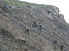 边坡防护网的防腐性主要体现在组成边坡防护网的钢丝决定的。 钢丝绳防护网是以高强度钢丝绳柔性网(菱形钢丝绳网、环形网、高强度钢丝格 栅)作为主要构成部分。并辅以锚杆、支撑绳等配件构成整个系统。以覆盖、紧固坡面的方式来防治坡面岩石崩 塌、滚落、爆破飞石等危害。