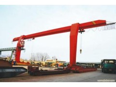 单梁门式起重机是起重机经过多个发展阶段演变过来的,是一种近些年新兴起来的起重设备,它的外形就像是一个门框架,由此命名的,适用面广,起重量大,通用性强,受众多行业的欢迎。承载主梁下安装两条支脚,可以直接在地面的轨道上行走,主梁两端可以具有外伸悬臂梁。造船龙门起重机是门式起重机的一种,主要用于船台拼装船体,常备有两台起重小车:一台有两个主钩,在桥架上翼缘的轨道上运行;另一台有一个主钩和一个副钩,在桥架下翼缘的轨道上运行,以便翻转和吊装大型的船体分段。起重量一般为100~1500吨;跨度达185米;起升速度为2~15米/分,还有0.1~0.5米/分的微动速度。产品参数
