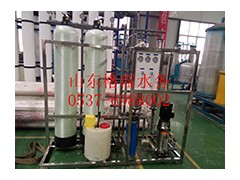 反渗透设备是将原水经过精细过滤器、颗粒活性碳过滤器、压缩活性碳过滤器等,再通过泵加压,利用孔径为1/10000μm(相当于大肠杆菌大小的1/6000,病毒的1/300)的反渗透膜(RO膜),使较高浓度的水变为低浓度水,同时将工业污染物、重金属、细菌、病毒等大量混入水中的杂质全部隔离,从而达到饮用规定的理化指标及卫生标准,产出至清至纯的水。由于RO反渗透技术生产的水纯净度是目前人类掌握的一切制水技术中最高的,洁净度几乎达到100%,所以人们称这种产水机器为反渗透纯净水机。