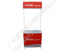 此促销台为新开发产品,桌面和架体全部为铝合金材质,外表美观高档,画面可随意更换,收起来等同于易拉宝的大小。产品明细:每箱数量为5个,包装纸箱规格为75*35*40cm;本公司的产品新颖别致,美观大方的展架能使您的产品得到更好的终端展示,吸引消费者的目光,提升产品的知名度,创造更多的经济效益,为您的企业的快速发展开拓了一条更加快捷!展宝展示器材主要经营:各种便携式展示器材的生产销售,包括促销台、X展架、拉网展架、易拉宝、德国展架、自由空间、资料架、报刊架、挂画架、海报架、注水旗杆、三角架等产品