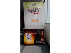 此促销台为新开发产品,桌面和架体全部为铝合金材质,外表美观高档,画面可随意更换,收起来等同于易拉宝的大小。产品明细:每箱数量为5个,包装纸箱规格为75*35*40cm;本公司的产品新颖别致,美观大方的展架能使您的产品得到更好的终端展示,吸引消费者的目光,提升产品的知名度,创造更多的经济效益,为您的企业的快速发展开拓了一条更加快捷!展宝展示器材主要经营:各种便携式展示器材的生产销售,包括促销台、X展架、拉网展架、易拉宝、德国展架、自由空间、资料架、报刊架、挂画架、海报架、注水旗杆、三角架等产品