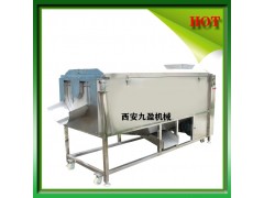 大型螺旋出料脱皮机JYTP-3000机型为大型根茎类果蔬的清洗去皮机,封闭式。物料由螺旋毛刷向前缓缓推进的出料,内置高压喷淋头冲洗。主要用于马铃薯,胡萝卜、芋头等根茎类果蔬的清洗脱皮,如选用较软的毛刷,可以达到给果蔬抛光上腊的效果。JYTP-3000大型螺旋出料脱皮机适于与大型自动化生产线相配。